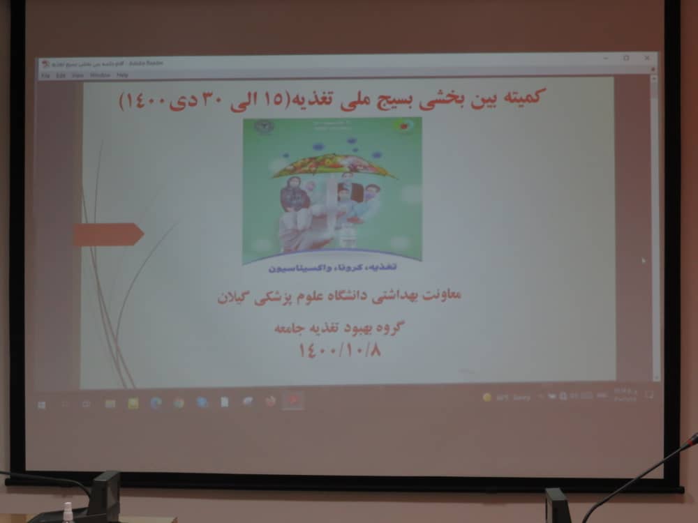 در راستای اجرای بسیج ملی تغذیه با شعار " تغذیه، کرونا ، واکسیناسیون "(30- 15 دی ماه 1400 )کمیته بین بخشی استانی به همت گروه بهبود تغذیه معاونت بهداشتی دانشگاه برگزار شد.