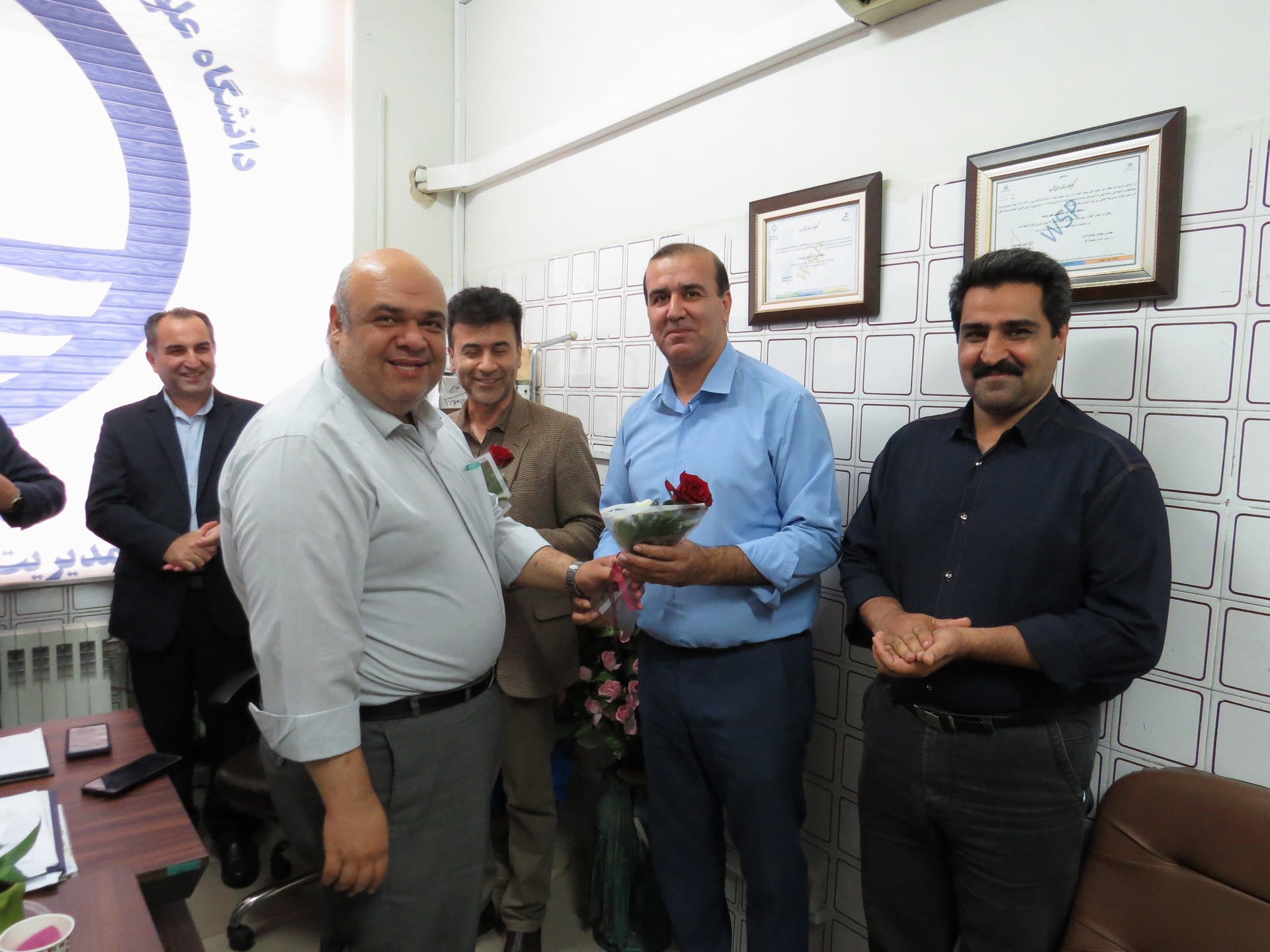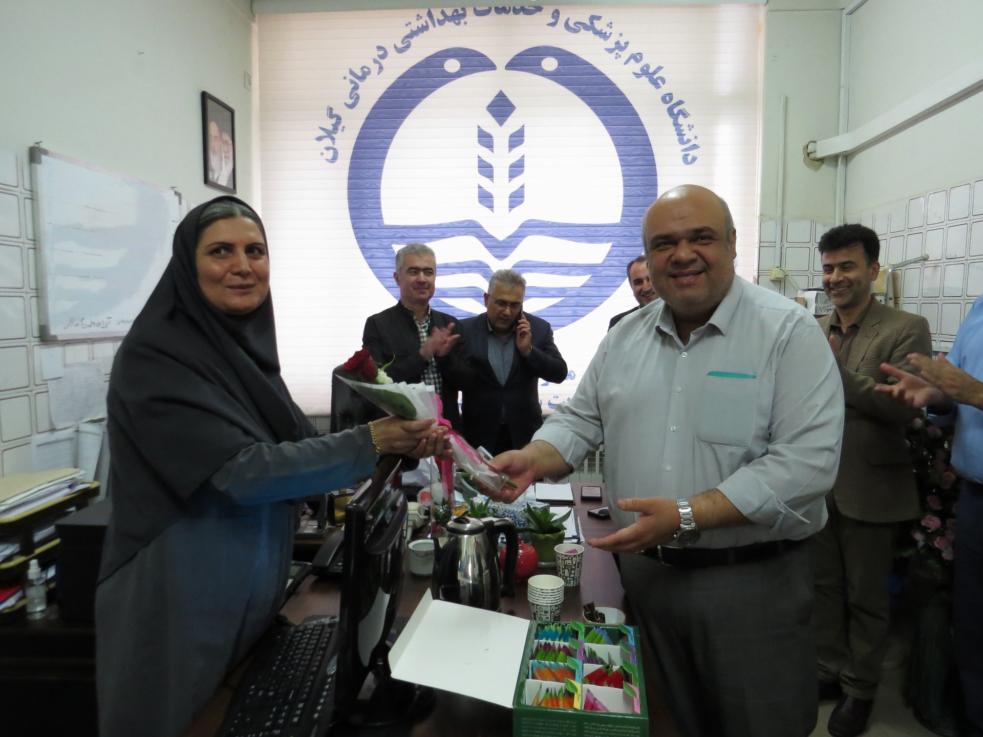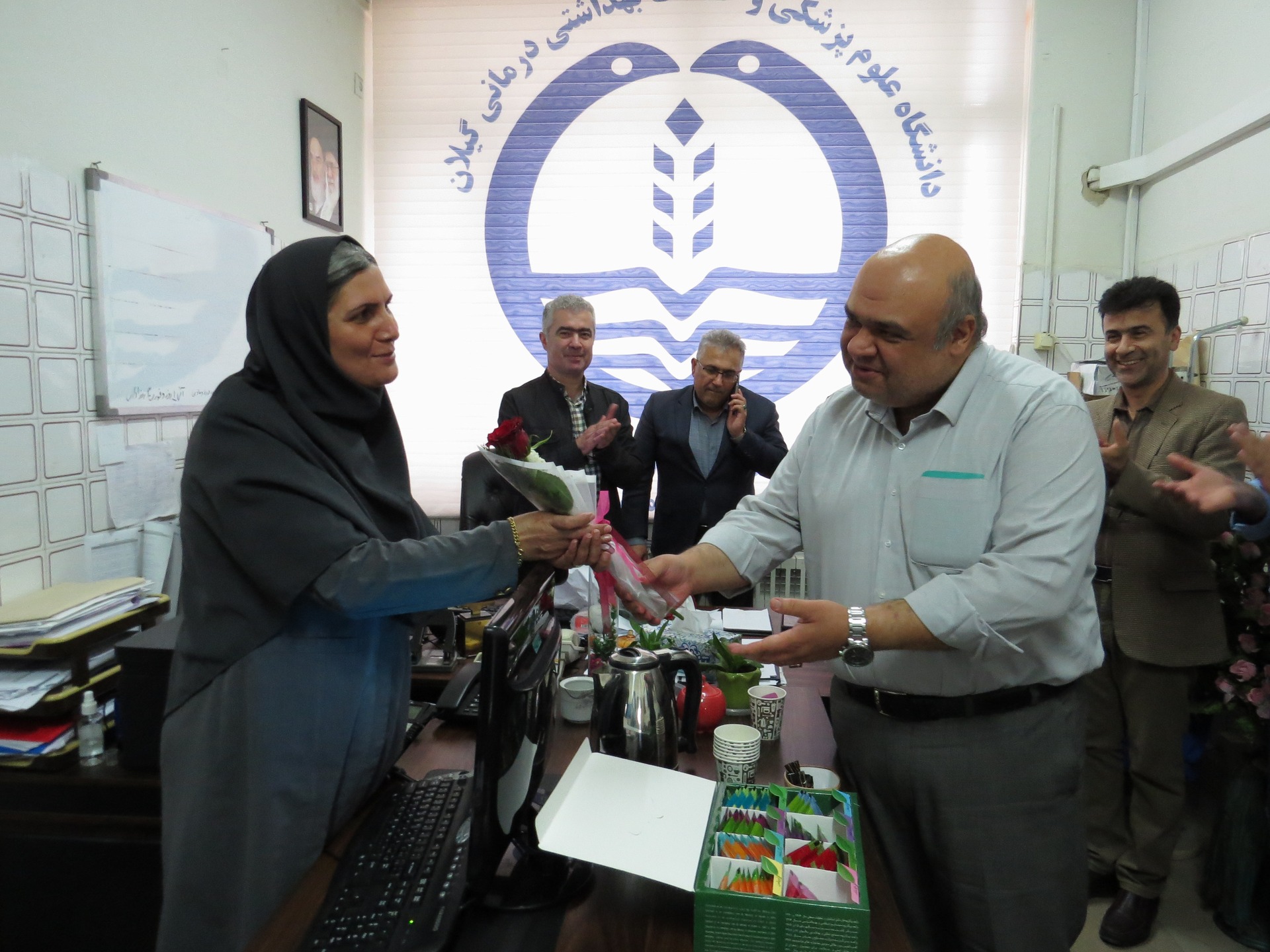 اهدای گل به کارشناسان بهداشت محیط توسط معاون بهداشتی دانشگاه